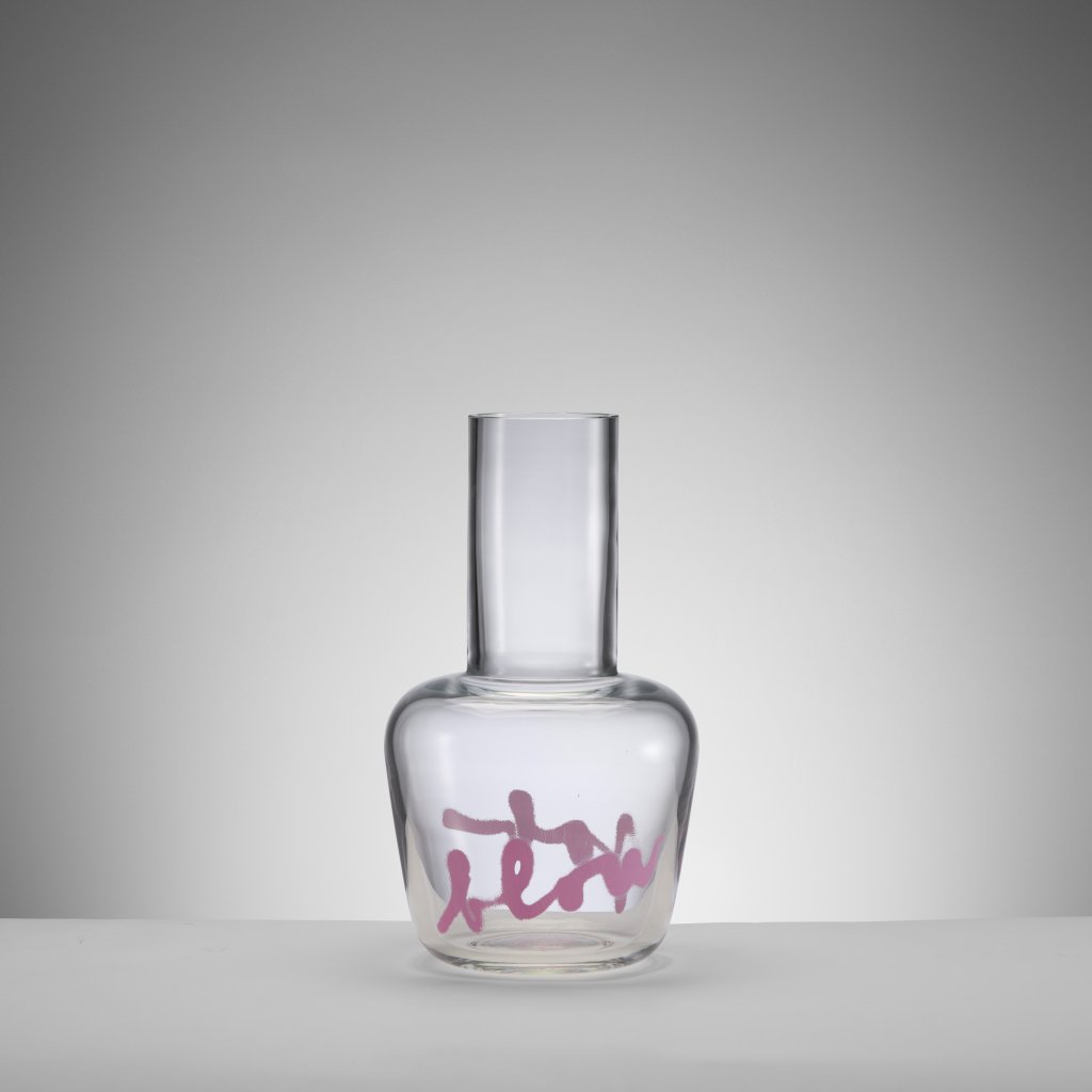 Jakub Berdych Karpelis' first limited edition vase series, titled Unnamed, dates back to 2017 and these vases have always carried strong messages. Historically, the vase was inscribed with messages that glossed interpersonal relationships or attitudes to life, for example the numerical code 22:39 referred to the Gospel according to St. Matthew "Love your neighbour as yourself". The cryptic messages addressed to mankind were later replaced by the straightforward message of LOVE with an arrow pointing to the main character - a flower that represents nature, which is what this is all about in the first place! The variant with the text BLOW JOB simply refers to the technique of making 'blown glass'. A conceptual design idea with a typical, yet laboriously cultivated sense of irony, self-irony and sarcasm, with which Jakub Berdych Karpelis comments on contemporary social and cultural prejudices. The popular vase has been given a number of colour variations and material versions, and a limited edition GOLDEN TOUCH with handwritten gold text, a certificate of authenticity and the author's signature is produced every year.